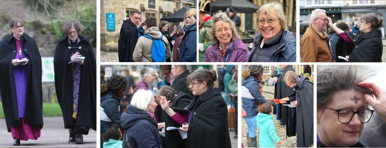 In the pace and pressure of modern life, many people struggle to make space for quiet reflection and a moment of connection with God. On Ash Wednesday, Bishop Fiona offered people in the centre of Wells, the opportunity to take time in their busy lives to think about and mark the start of Lent. She was joined by Tim Stevens, Precentor, Wells Cathedral and Kate Scott, Bishop’s Chaplain in the Market Square on market day, to offer them the opportunity to take part in the Ashing Service which takes place at the beginning of Lent.